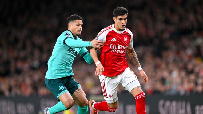 值得注意的是,面对垫底的狼队,阿森纳本赛季首次半场0射正。第56分钟,马丁内利巧妙甩开多赫蒂的防守,突入禁区后直接射门,皮球偏出。