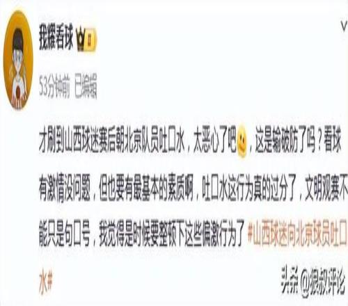 北京1分客场赢了山西,但球员退场时,个别山西球迷向北京球员吐口水的丑陋行为……