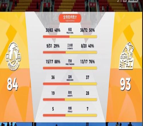 最终,广厦93比84战胜青岛,以2胜1负结束三连客之旅,重回积分榜首。胡金秋砍下31分8篮板6助攻2抢断,投篮命中率66.7%,三分球6投3中。