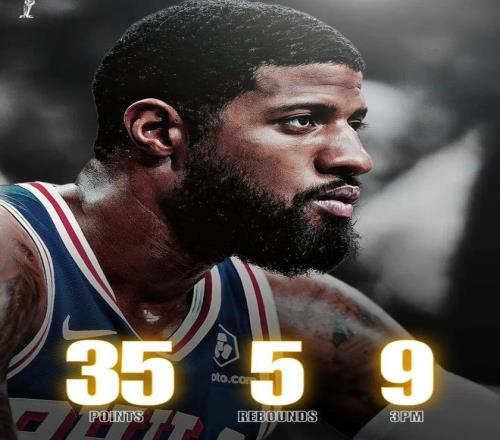 在本场之前,乔治本赛季一共为76人打了25场比赛,场均上场30.2分钟,只能得到15.4分5.3篮板3.6助攻,三项命中率41.5%/36.4%/86.5%,真实命中率54.8%。