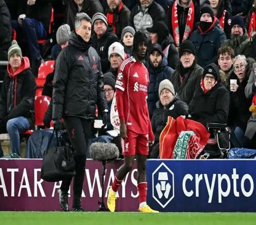 北京时间1月29日,欧冠联赛阶段第8轮,利物浦主场6-0大胜卡巴拉赫,保住利物浦跻身欧冠前八名,直接晋级欧冠16强。但在本场比赛中,利物浦再次遭遇伤病袭扰。开场仅3分钟,右后卫杰里米·弗林蓬被迫伤退,他似乎在追赶皮球时拉伤了腿筋,随后一瘸一拐地走下场。随后,斯洛特被迫换上了32岁的日本老将远藤航。
