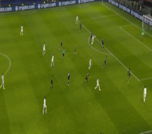 第67分钟,前场定位球机会,哈维-西蒙斯打门击中队友变线偏出