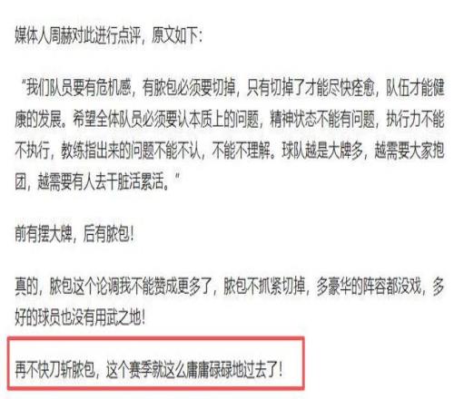 还表示如果脓包不抓紧切掉,北京队阵容再怎么豪华也可能没戏。