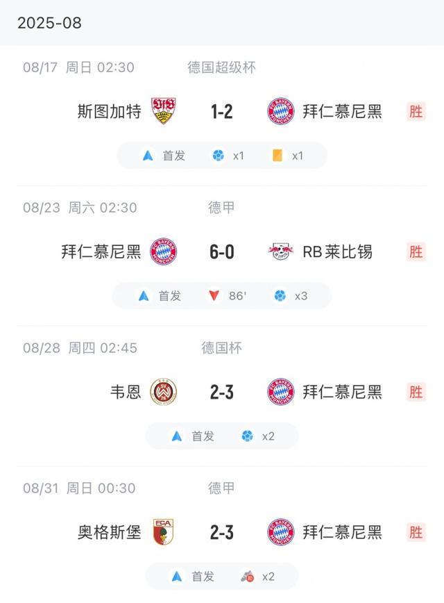 拜仁3-0法兰克福开赛全胜4分领跑 路易斯-迪亚斯两射一传凯恩破门