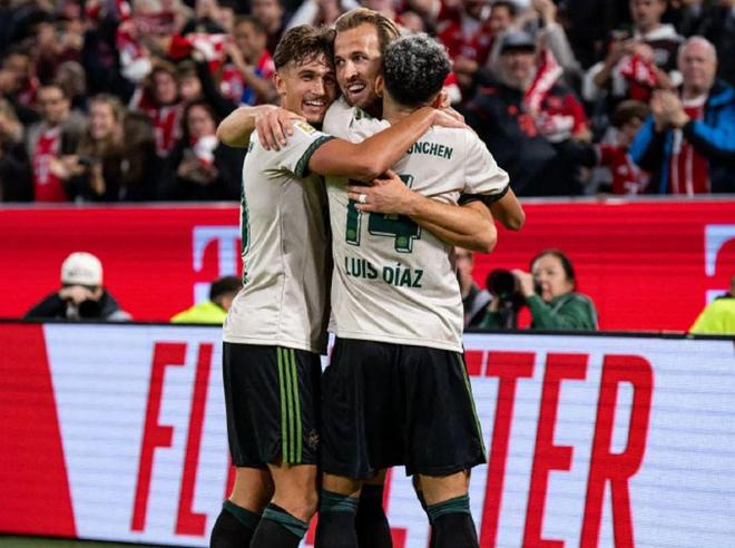 下半场,凯恩还在进球。第65分钟,拜仁打出反击,迪亚斯左路带球狂突,到了禁区后传中,凯恩机警地跟上接应,包抄射门得手,上演梅开二度的好戏。进球后,凯恩接受了队友的拥抱及祝贺。