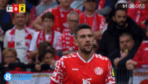 美因茨中柱!第26分钟,西耶布倒三角回敲,奥尔森包抄铲射击中立柱。↓