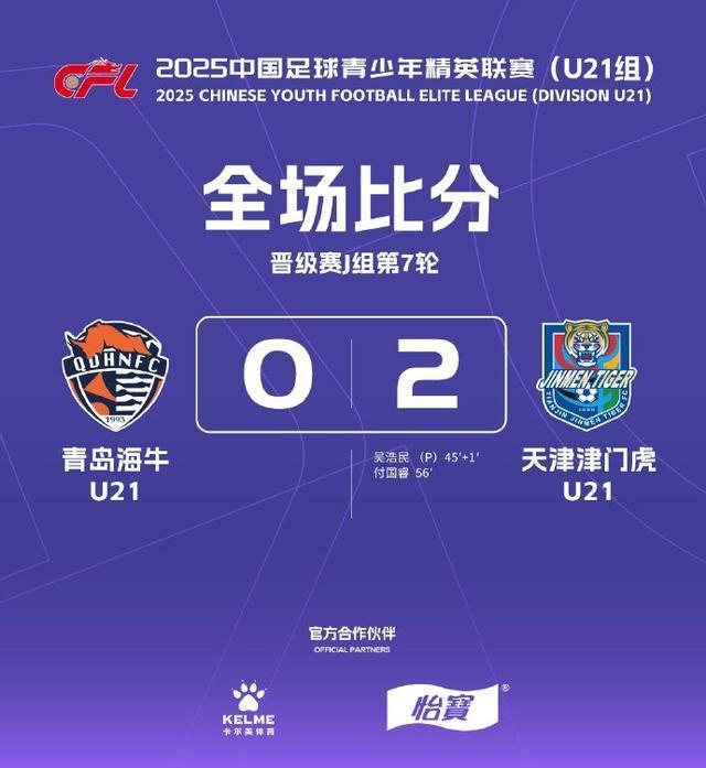 青岛海牛U21 0-2 天津津门虎U21