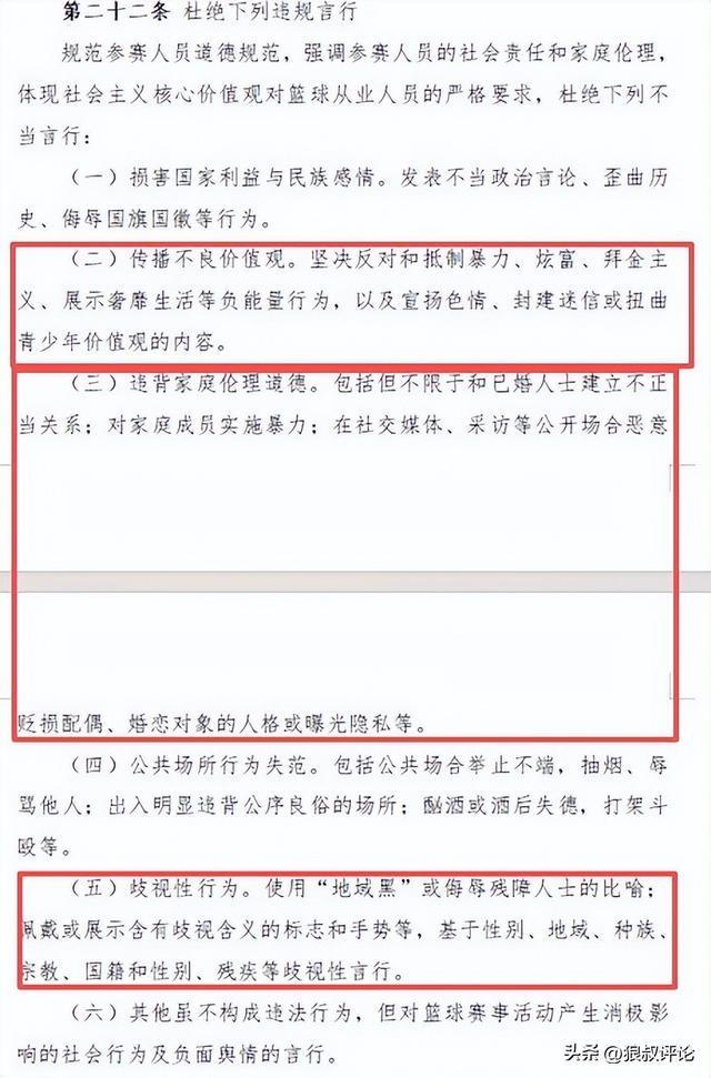 (六)其他虽不构成违法行为,但对篮球赛事活动产生消极影响的社会行为及负面舆情的言行。