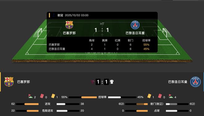 雷速体育10月2日讯 欧冠联赛第2轮,巴萨坐镇主场1-1暂平大巴黎。