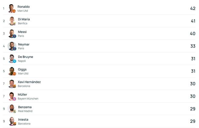 在欧冠联赛阶段第2轮的比赛中,那不勒斯主场2-1击败葡萄牙体育,德布劳内助攻霍伊伦两次破门,欧冠助攻次数达到31次,与吉格斯并列,进入历史第五,排在前三的是C罗、迪马利亚、梅西。