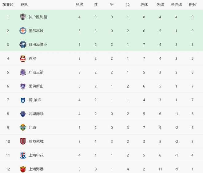 亚冠精英联赛、东亚区第5轮的比赛结束了首个比赛日的争夺。
