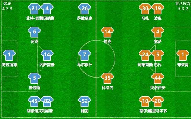 相比于之前的阵容,本场比赛曼城派出了特拉福德加上阿克和斯通斯的中卫组合,两个边后卫则选择了艾特-努里和胡桑诺夫,相比于之前的先发几乎是换了一套。这也导致尼科·冈萨雷斯刚刚找回的状态又有些迷失,在跟对手的中场硬度相碰时、没有任何的机会。